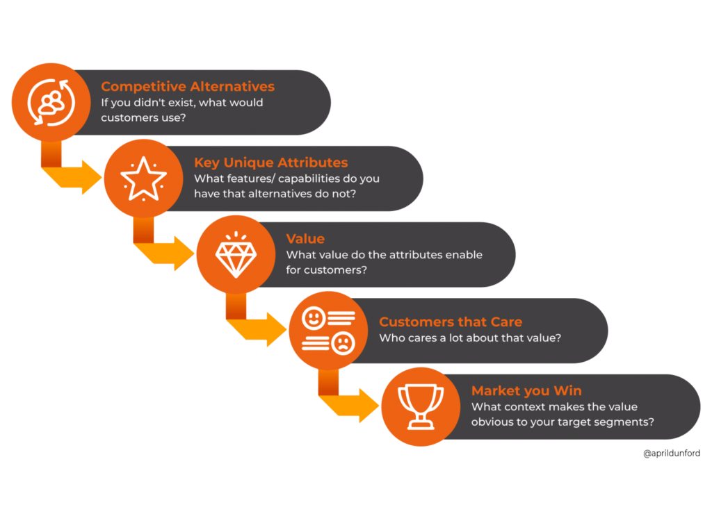 A good way to do so is to use a Positioning Canvas like the one below from April Dunford’s book.